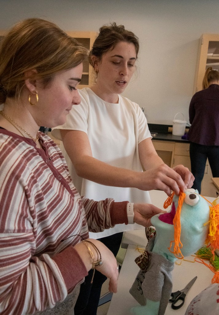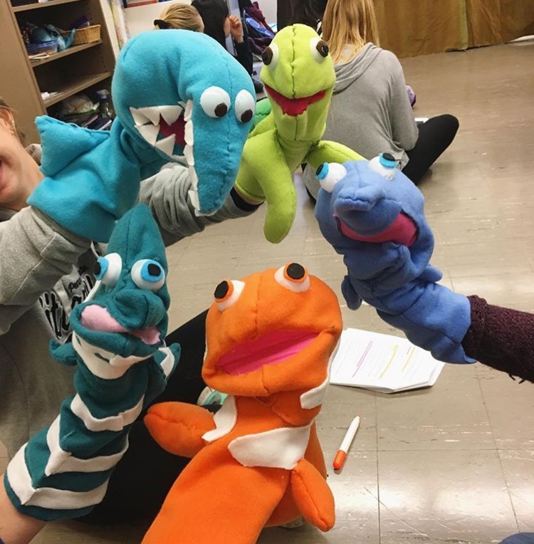 This course involved a semester-long service learning project informed by Sesame Street, where students sewed puppets and wrote scripts around a theme of inclusion. Through community partnerships that Alex built over five years’ time, students performed these shows at six different schools including campus childcare centers, a Montessori program, a Quaker program, a Lutheran program, and a public elementary school.
